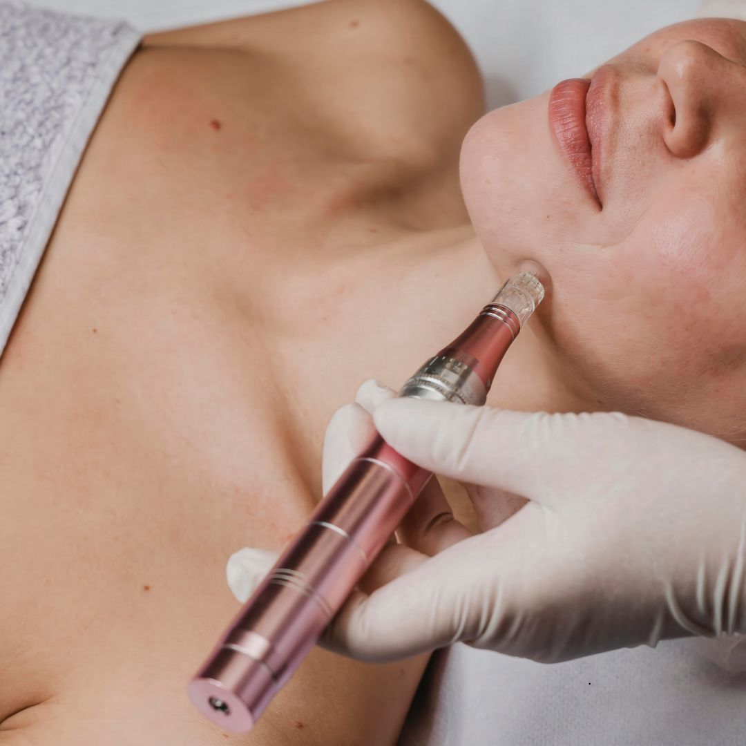 Radiofrequency Microneedling combines microneedling with radiofrequency energy to maximise the treatment outcome. Microneedling involves the use of tiny needles to create controlled micro-injuries in the skin, stimulating the body's natural renewal process and subsequently boosting collagen and elastin production. In radiofrequency microneedling, the radiofrequency energy is passed down into the skin via the micro-needles which allows treatment to be delivered into the deeper layers of the skin, further enhancing the effects. This treatment is effective for addressing concerns such as acne scars, enlarged pores, uneven skin texture, and moderate to severe wrinkles. Radiofrequency microneedling typically requires some downtime for recovery due to the micro-injuries created by the needles which can leave the skin pink/red for around 12-48 hours (depending on skin sensitivity).